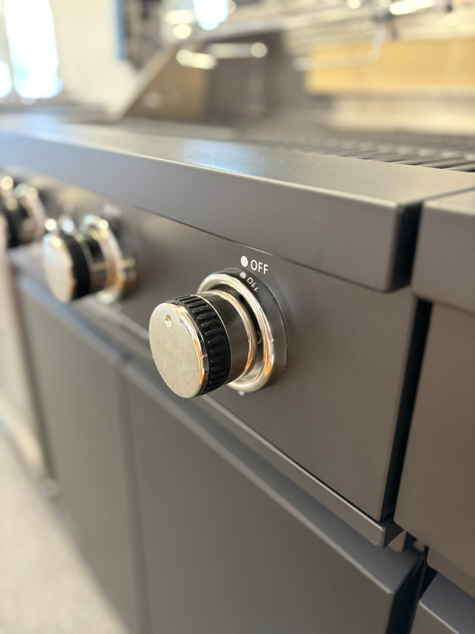 - 6-flammig: 4 Hauptbrenner, 1 Infrarot-Heckbrenner, 1 Infrarot-Seitenbrenner (bis 800 °C)